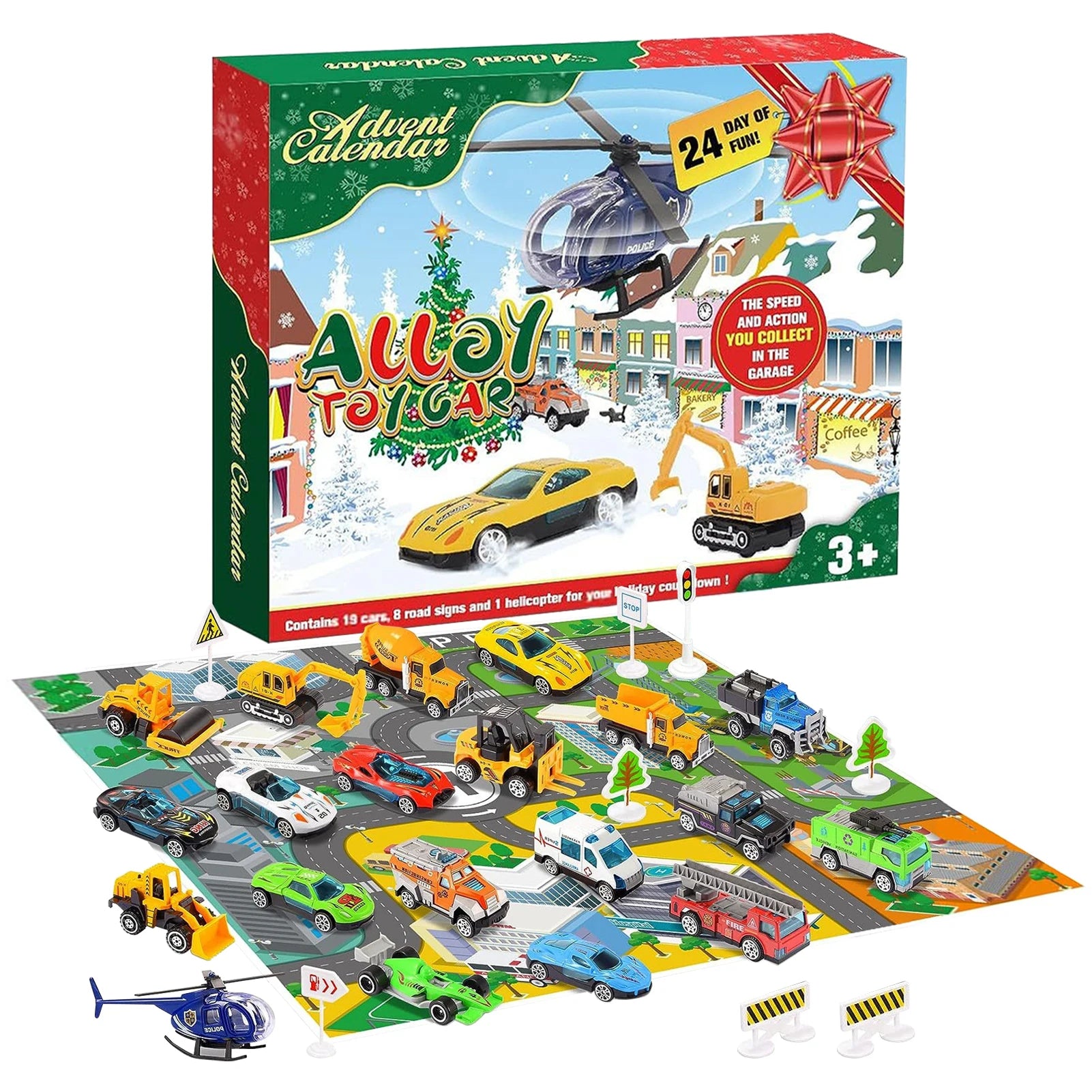 Boîte de calendrier de l'avent 24 jours, 24 pièces, Mini voiture , jouets, calendrier de compte à rebours de noël, cadeaux de noël pour garçons et filles