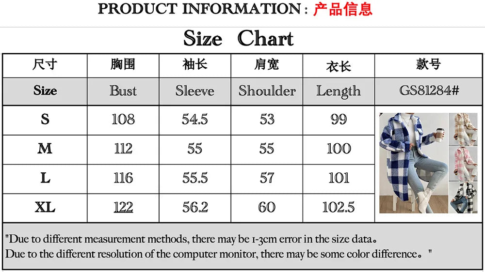 Cardigan 2023 Autumn Long Sleeved Turn-down Collar Plush Plaid Coat Loose Temperament Commuter Longline Jacket Women Outerwear