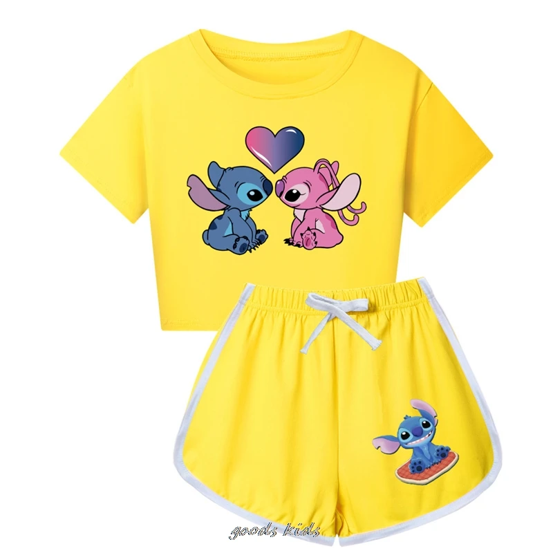 Lilo et Stitch T-shirt Shorts loisirs sport costume filles vêtements ensemble bébé garçons Homewear costume grands enfants été T-shirt meilleur cadeau