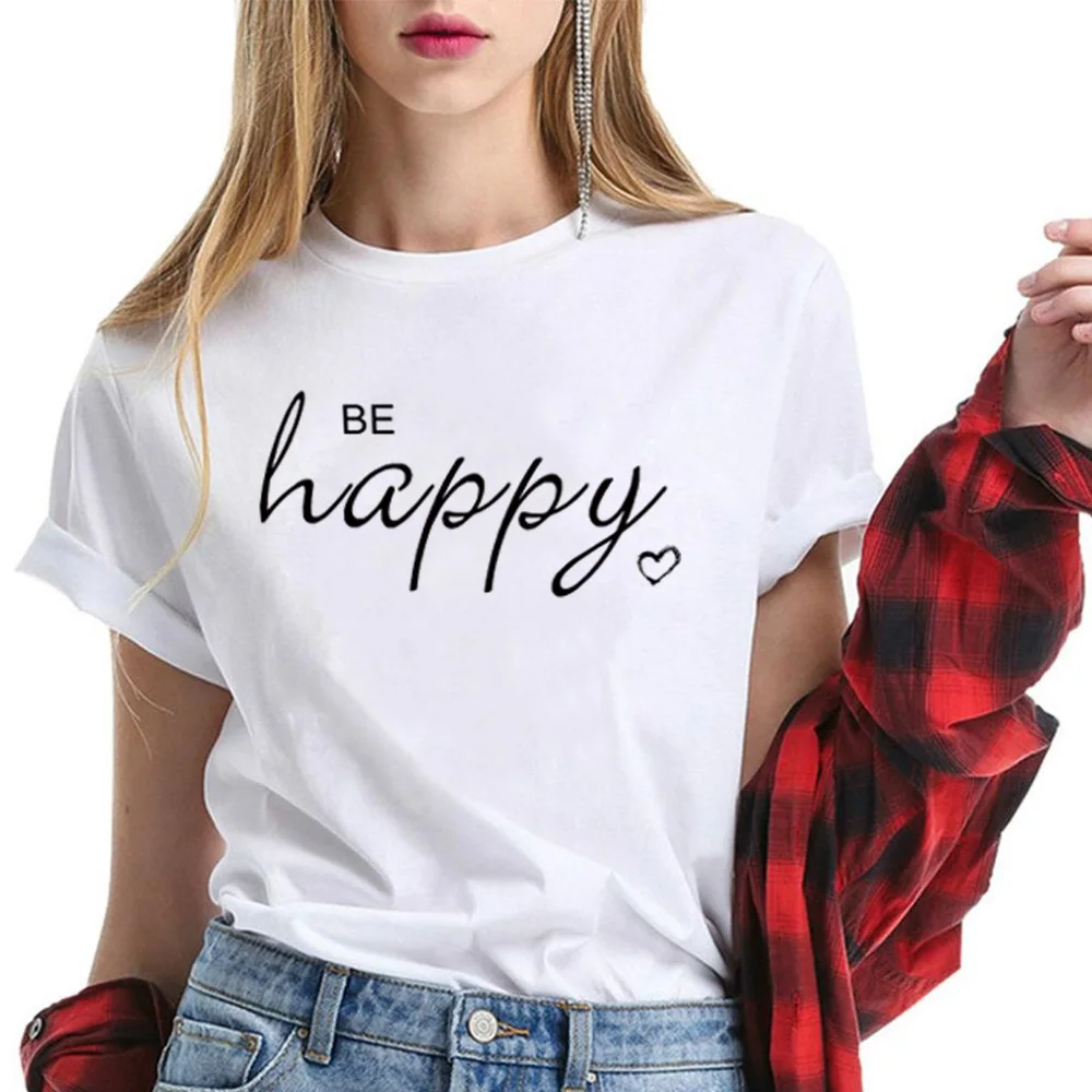 T-Shirts Femme Col Rond Manches Courtes Texte Simple Imprimé Mode D'été Décontracté T-Shirts Femme Hauts Tee