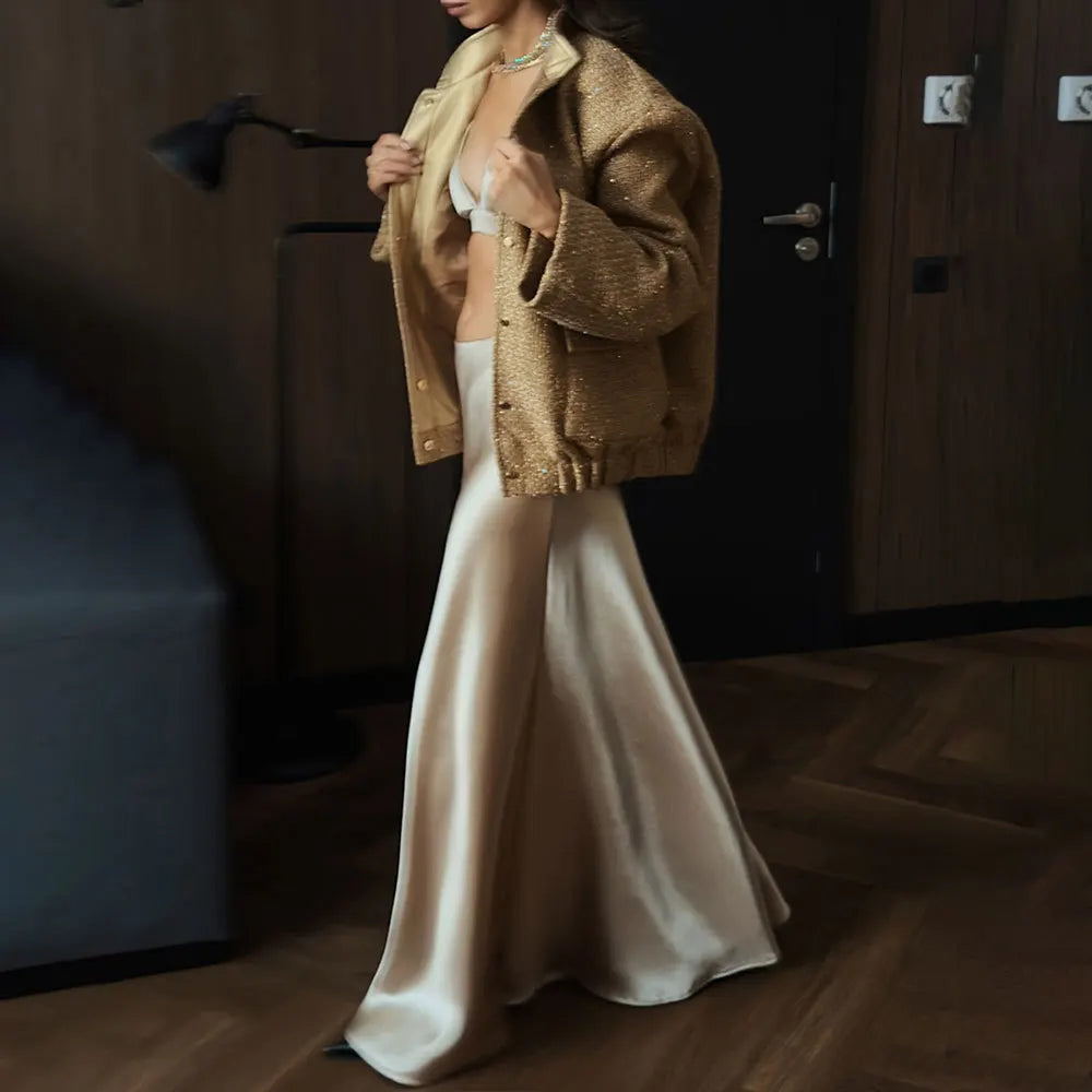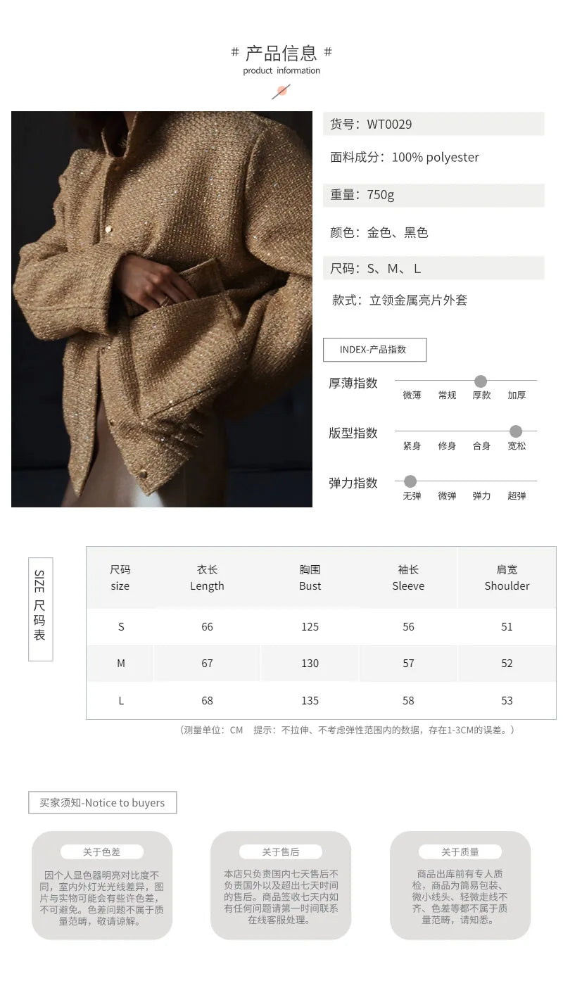 Veste à paillettes dorées pour femmes, nouvelle mode, col montant, ample, vêtements d'hiver, 2025